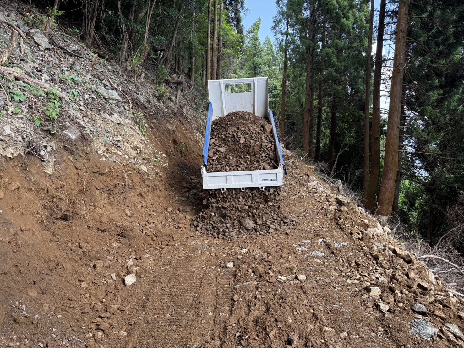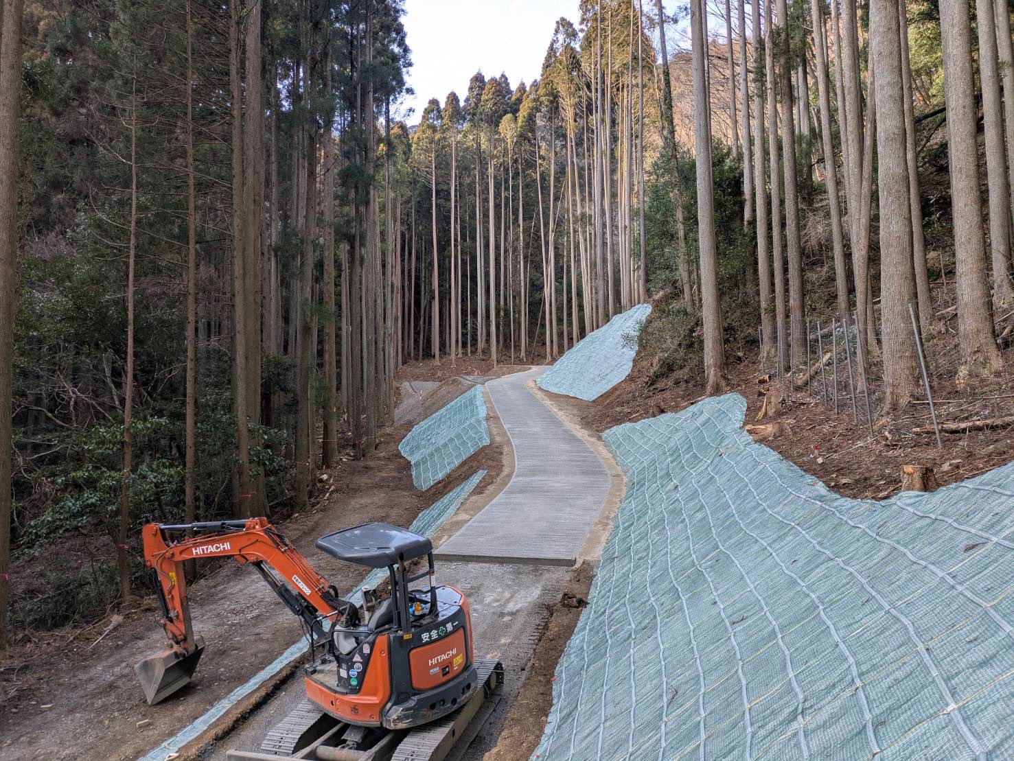 林業を行う上で必要なトラックや機械が安全に通れるような道を確保するため、作業用道路を建設します。
